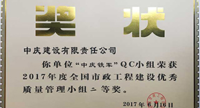 中慶建設(shè)QC成果喜獲全國市政工程優(yōu)秀QC小組二等獎